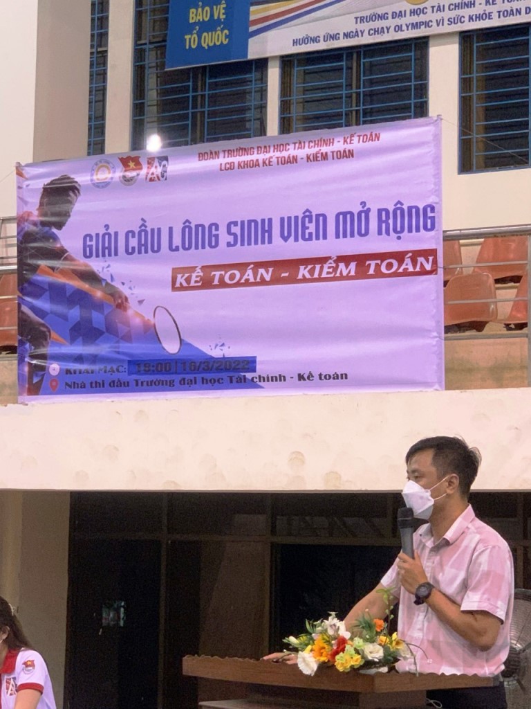 Hoà trong không khí thi đua sôi nổi của Tháng Thanh niên, chào mừng kỷ niệm 91 năm Ngày thành lập Đoàn TNCS Hồ Chí Minh (26/03/1931-26/03/2022), tiến tới Đại hội Đại biểu Đoàn TNCS Hồ Chí Minh Trường Đại học Tài chính - Kế toán lần thứ XXII; chào mừng kỷ niệm 47 năm Ngày giải phóng hoàn toàn miền Nam thống nhất đất nước 30/4 (1975-2022); 136 năm Ngày Quốc tế lao động 01/5 (1886-2022); 46 năm Ngày truyền thống Trường Đại học Tài chính - Kế toán (28/6/1976 - 28/6/2022), ngày 26/03/2022 vừa qua, LCĐ Khoa Kế toán - Kiểm toán đã tổ chức đêm Chung kết Hội thao “Giải Cầu lông sinh viên Khoa Kế toán - Kiểm toán mở rộng” năm 2022.